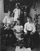 "Oppigårds" (glasverandan), Östansjö. Barnen är från vänster, bakre ledet: Valborg Jonsson, Ingrid Jonstam och Karin Edlund, främre ledet: Erik Edlund, Astrid Jonsson och Holger Jonsson. Sittande längst fram: Göte Edlund.