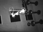 "Golv och läktare på Högspänningsinstitutet fyllda av imponerade åskådare" vid Svenska Elektricitetsverksföreningens besök, Husbyborg