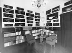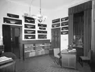 Utställning i avdelningen för Sjösport i Sjöfartsavdelningen. Provmontering av föreslagen utställning rörande segelsporten i sjöfartsavdelningens suterrängvåning.