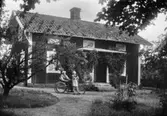 SLÄKTGRUPP FRAMFÖR ETT BOSTADSHUS