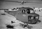 Ostermans helikopter "SE HAC" befordrade posten till skärgården tiden 10/2 - 30/4. Vid starten från Stockholm, Lindarängens flyghamn. Helikopterpilot Lars Westlund.