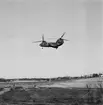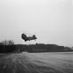 Bilden föreställer en så kallad flygande banan - en helikopter typ Vertol 44 under flygning.