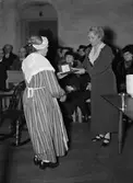 Elisabeth Linnér delar ut priser vid invigningen av Uppsala läns husmodersförbunds hemslöjdsutställning, Rikssalen, Uppsala slott