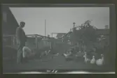 "Andersson. Vessinge, Näshulta." Två kvinnor matar kalkoner.