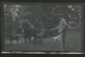 "Bäck, Gusten Kindblom." En man håller en tjur.
