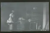 En kvinna manglar med mangelbräde och kaveldon. Mangskog, Värmland
