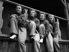 "Kappfabrikens framgångsrika flickor"; Ingrid Candler, Mary Nilsson, Svea Kling och Kerstin Forsell, vinnare i korporationssimtävling vid Fyrisbadet