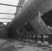 Ubåtarna förtöjda utsidan av Klas Horn och pansarskeppet Gustav V, Berga Örlogsskolor 1962