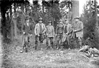 Kungliga jaktsällskapet, 13 personer. Bostadshus i bakgrunden.