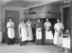 "Interiör från köket med serverings- och kökspersonal vid Gustafsbergs barnhus, internatskola."
