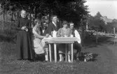 Kaffedrickning utomhus, familjegrupp. Sam Lindskogs privata bilder.