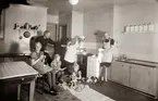 Kommunalarbetarnas julfest år 1948 i Skara. Kaffe och tårta klart för servering av damerna fru Tropp, fru Anna Andersson, fru Selva Lindqvist och längst till höger Kickan Ståhl. Stående manlige medhjälparen Nils Ohlsson.