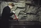 Bo Lundvall (till vänster) och Lars Barkman (till höger) lägger ned en skulptur i konserveringskar på, konserveringsanläggningen på Beckholmen.