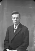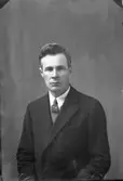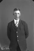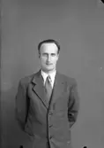 En chaufför i rutig skjorta och kavaj står invid en SJ-buss, trol. på busstorget/järnvägsplan vid järnvägsstationen, Växjö.