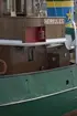 Närbild på isbrytaren Sankt Eriks kommandobrygga, t.h. Jackie Holmbäck.