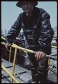 Konservator Bo Lundvall arbetar med täthetsbestämning. Lundvall arbetade på med Vasa under åren 1957-2000