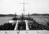 Besättningen på kryssaren GOTLAND uppställda på däck.