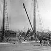 Lastning av timmer från lastbil till godsvagn med Puller timmerlastningsapparat, Glissjöberg.