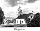 "Västanfors", Västanfors kyrka, lavering av J.G. Schultz.