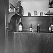 Utställning. Interiör från Öbergs möbelaffärs utställningsmonter på Hantverksmässan 1927 i Gamlebyskolan, Varberg. Montern är inredd som ett vardagsrum med en soffgrupp.