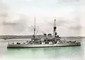 Reproduktion av en foto som visar pansarbåten Manligheten år 1907.