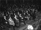 Kung Gustav V, prinsessan Sibylla och kronprins Gustav Adolf i samband med Karl Johansförbundets minnesbankett i Universitetsaulan