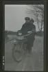 Man på moped/ motorcykel. "Karl Pettersson, Åtorp."