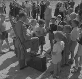 Kopparbergs marknad 30 september 1968 Gatumusikant underhåller på marknadstorget i Kopparberg,