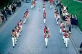 Frälsningsarméns musikkår marscherar över Fiskartorget i Västerås.
