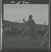 Teckning av Nils Nilsson Skum, troligen utförd mellan 1930 och 1938. Fyra personer arbetar med att riva två kåtor i vistet, ackjor packas inför uppbrottet.