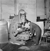 Maskinverkstaden, östra delen närmast; taket färdigt, ny plåt med målningsbehandling, västra delen läktning klar för läggning av nytt tegeltak (2-kupigt)