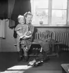 "Påklädning av en pojke", Djursholm Kvinna och pojke Interiör
