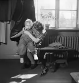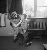 Påklädning av ytterkläder på daghem i Varberga, oktober 1967