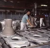 Interiör, Sanitetsporslinsfabriken. Gjutna delar av wc-stolar. Personer: okänd