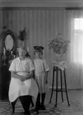 Anna Larsdotter Olsson (Elna Brundins mor) poserar vid en piedestal.
