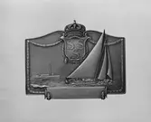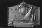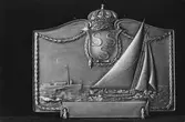 Skulptur av John Runer. Plakett i guld på 70-årsdagen.