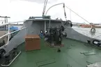 Öland, Borgholm. Motorgaleasen Uranus av Hasslö lastar Ölandsflis.