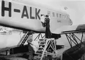 Premiärturen för Norrlandsflyget, Malmö - Luleå 11/9 1944. Flygplanet "Falken", Aerotransports Douglasplan vid mellanlandningen på Bromma flygplats, Stockholm.