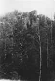 Pukebergs glasbruk. En förfallen ekonomibyggnad vid en berghäll.