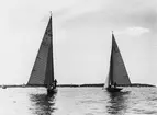 Från den s k Segelveckan i Helsingfors 1931 med seglingar arrangerade av Finlands Seglarförbund och Nyländska Jaktklubben, från bryggan nedanför NJK:s klubbhus på Blekholmen.