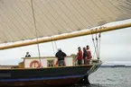 Uppland, Stockholms län, Frötuna skeppslag, Länna socken, Vettershaga. Vedjakten Adalia, byggd 1903-1904 på Söderöra av Erik Söderman. Foto 1950.