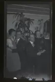 "I Österåker. Frida, Axel, Filip och Signe" Två par sitter i ett rum, kvinnorna sitter i knät på männen. Till vänster makarna Frida och Axel Fredriksson.