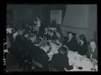 Jordbruk, slåtter- och skördegillen. Gotland. Autndag. "Hallbjäns-Petterssons grupp i Trananga med landshövdning Wall, fröken Wall mfl".