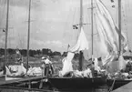 Evert Taube i segelbåt.