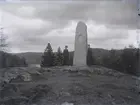 "Tagit 1923. Syster Hilda o. Selma Sahlberg från Jälund (?) Stjänby (?) vid Pontus Wiknersstenen. 1923. Kaserna. Lyckebo. Fam." "Selma står till vänster om stenen."
