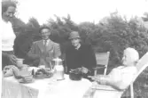 Servis från Bo Fajans, tidigt 1900-tal. Tekanna, fat, skålar och koppar.