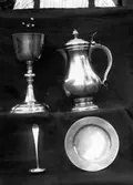 Nu i Västergötlands museums samlingar. Saltspade av silver inv.nr: 85 782, Kaffeskedar 12 st, inv. nr: 85 792. Saltspade av silver inv. nr: 85 781.