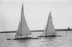 "Båten närmast är SK-30-an 'Lill-Singva' senare Yvette nr 169 byggd 1939 i Kungsör"