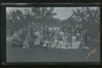 Släktmöte i trädgården sommaren 1902 hos Anna och Gustaf Ideström i Neglinge, Saltsjöbaden. Längst till vänster Anna och Gustaf Ideström.