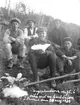 "Skogsplantörer m.fl. vila vid en snödriva å Skistad 20 maj 1924. Fjällbackabor".